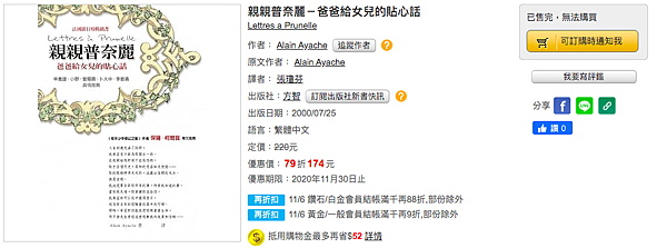 一開始吸引我從師大圖書館架上拿起《親親普奈麗》是因為有《牧羊少年奇幻之旅》作者保羅・柯爾賀背書,另外,這本書也是法文暢銷書,中譯本由方智在2000年出版,目前已絕版,譯者為張瓊分,之後希望我也能讀懂法文原文版~