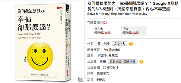 此書作者為Google X商務長,本身是工程師背景,有一兒一女,工作地位高、經濟狀況好,看似幸福的生活,愛子阿里卻因醫療疏失而在21歲去世。作者寫道自己如何走出喪子之痛,工程師對宗教的看法,性質反而接近傳記故事。