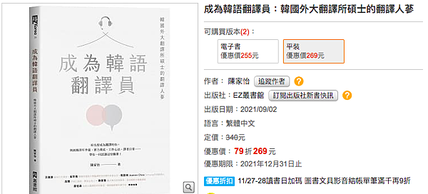 這段「竹子扎根哲學」出自韓語譯者陳佳怡今年9月出版的《成為韓語翻譯員:韓國外大翻譯所碩士的翻譯人蔘》(嗯,書名真的是「人蔘」,而不是「人生」或「人森」喔哈哈)。陳佳怡大學原是法語系,後轉至英語系,大學時期發現韓文字長相可愛,便一頭栽進韓語學習的世界,夢想成為韓語翻譯員,並先後申請到韓國的大學交換、唸過語學堂,而後決定到韓國攻讀翻譯所。